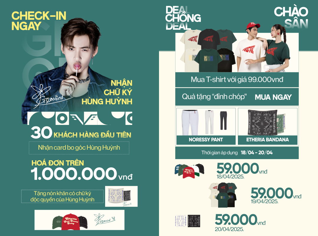 Đặc biệt, với hóa đơn từ 1.000.000đ, khách hàng sẽ nhận được khăn hoặc nón có chữ ký Hùng Huỳnh – món quà độc quyền dành riêng cho fan chân chính, không thể tìm thấy ở đâu khác.